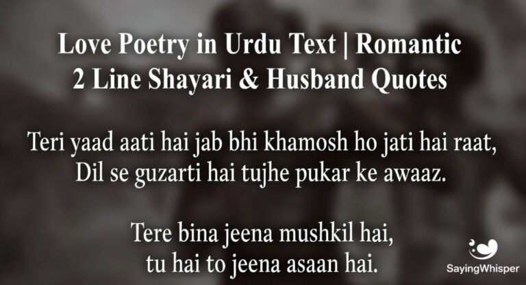 Love Poetry in Urdu Text | Romantic 2 Line Shayari & Husband Quotes
